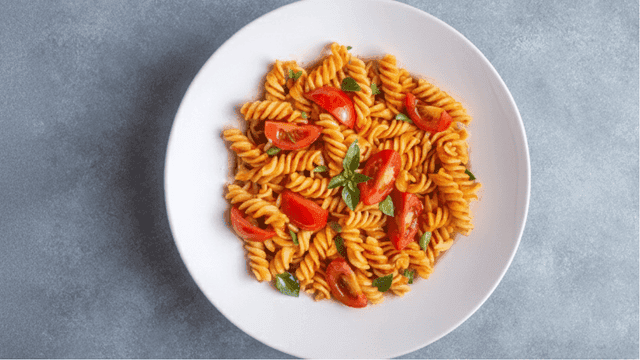 Combine and Serve: Add the drained fusilli pasta directly into the sauce. Toss well until the pasta is fully coated. Cook for another minute or two on the heat, then remove. Serve immediately topped with grated Parmesan cheese and fresh basil leaves.